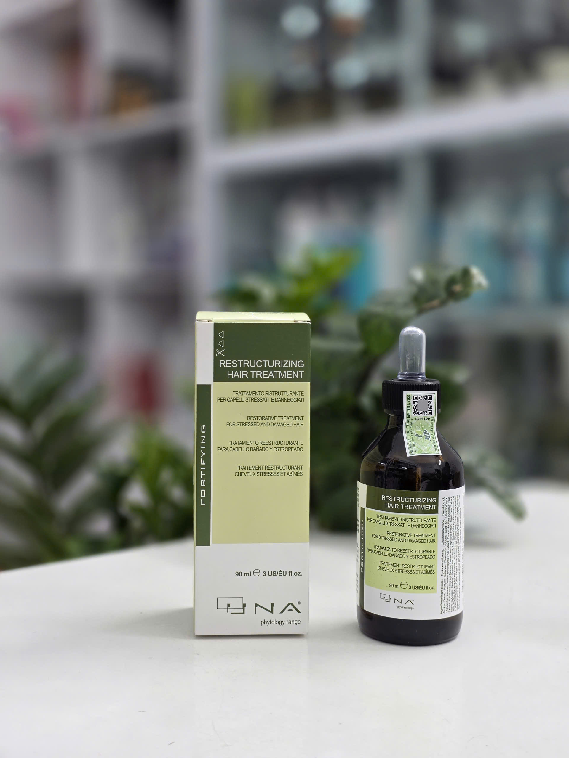 Dưỡng chất phục hồi tóc Una Restructurizing Hair Treatment 90ml là giải pháp chăm sóc chuyên sâu dành cho mái tóc hư tổn, khô xơ và dễ gãy rụng do uốn, nhuộm, tẩy hoặc tác động nhiệt thường xuyên.